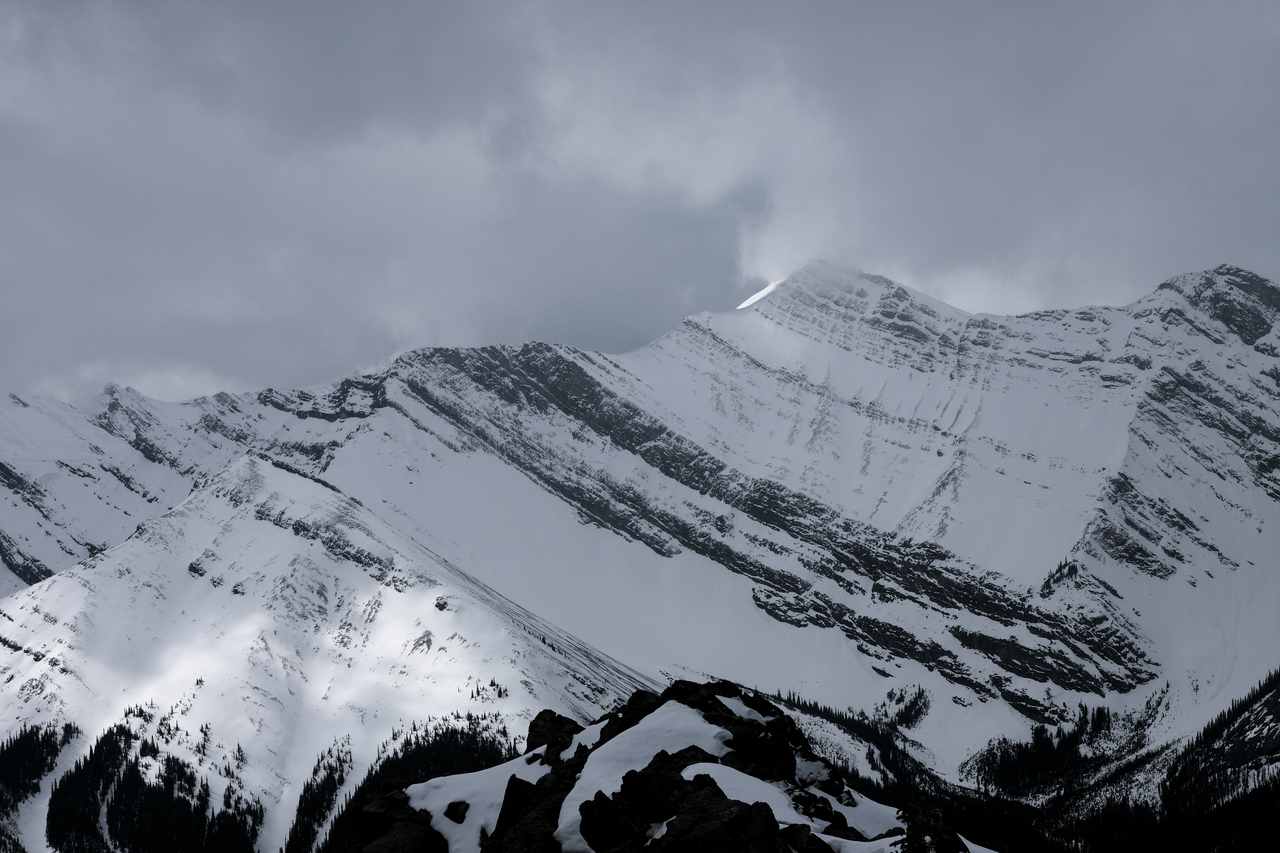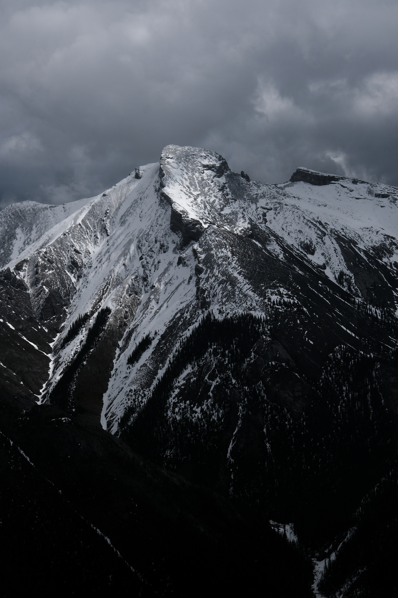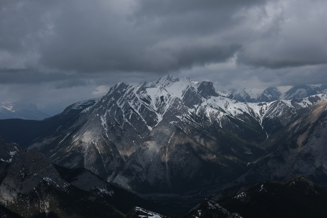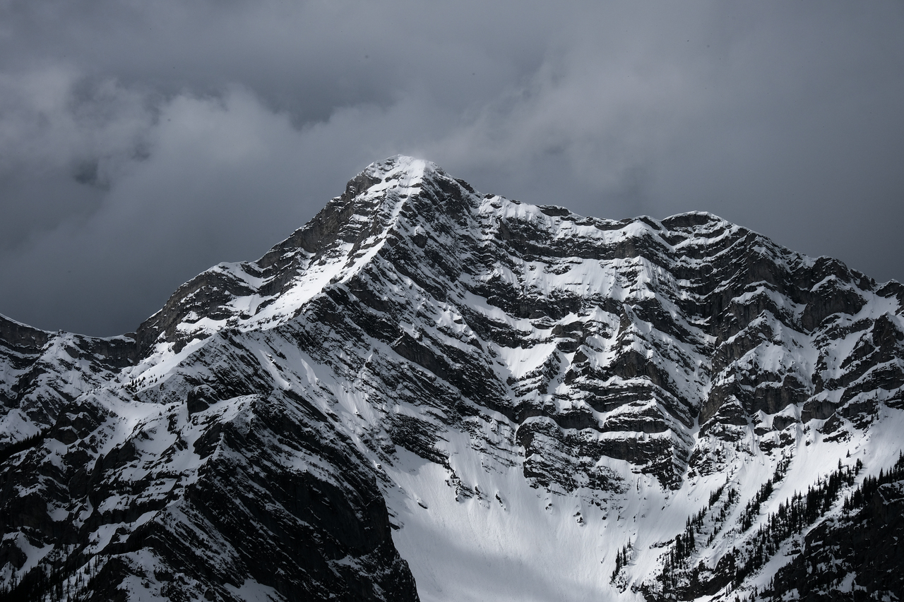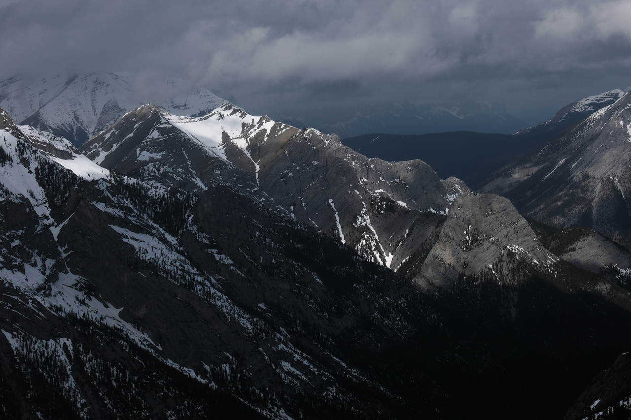 One of my favourite views from our summit stay was this lighting on Bryant 4, emphasized by the dark stormy background.