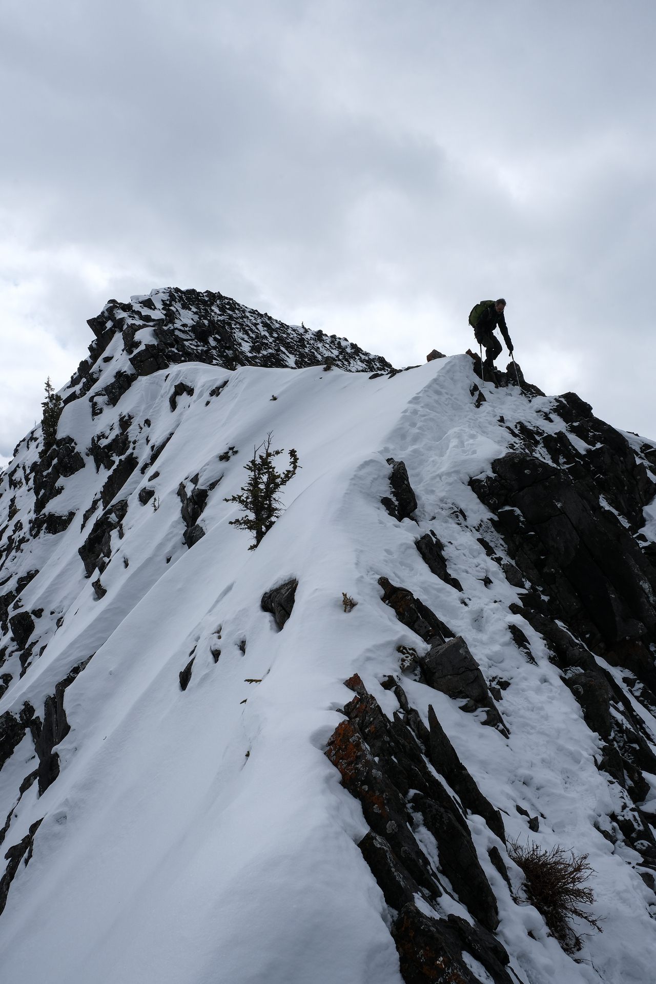 Once on the ridge crest it's just a short traverse to the summit. This short traverse was complicated however, by lingering snow making the "bouldery" terrain quite slick!