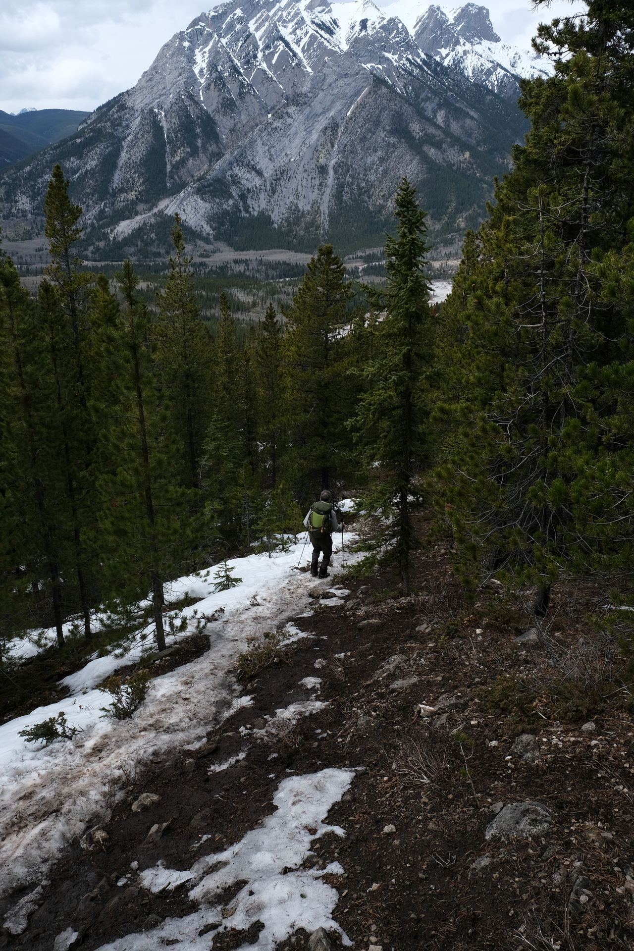 A muddy, slushy trail leads back down to the highway...Things are definitely heating up in the Rockies! Although Wasootch Ridge isn't the grandest of objectives, it makes for a good early season outing, when most (but not all) of the snow has melted. The long ridge may feel endless at times, but the reward is a unique view, deep in a secluded valley, surrounded by a horseshoe of mountains (all of which are scrambles!) unseen from the highway.