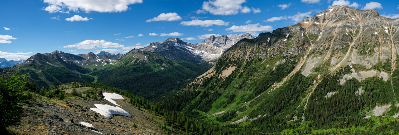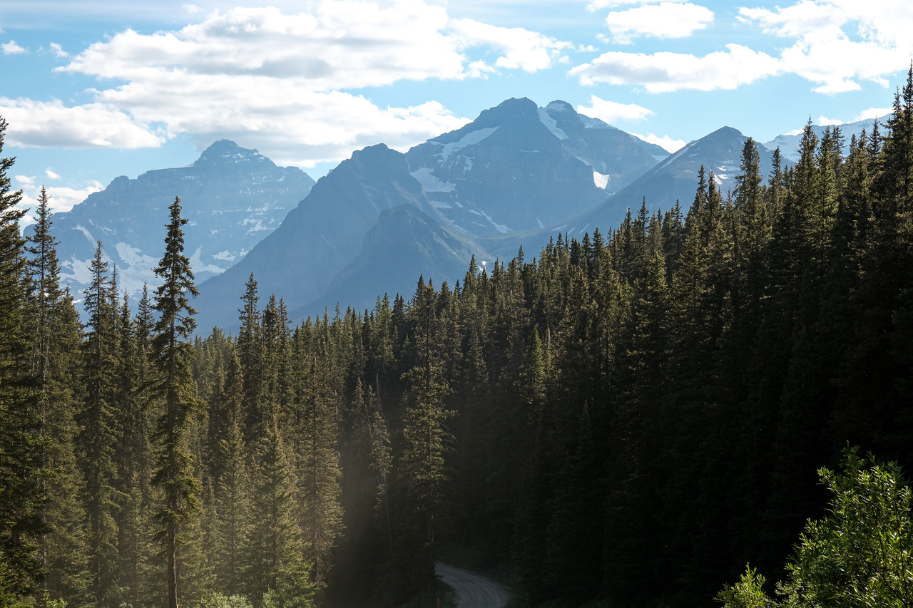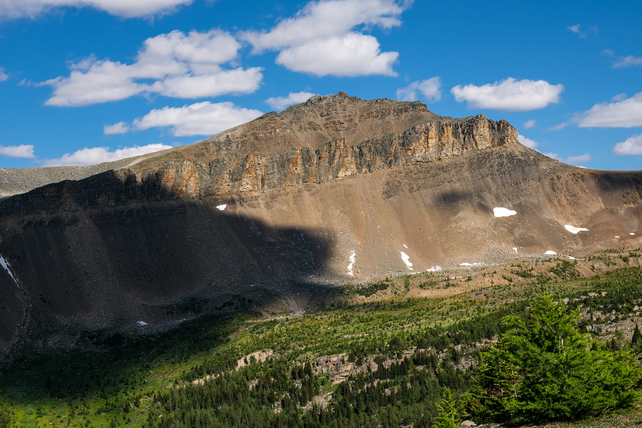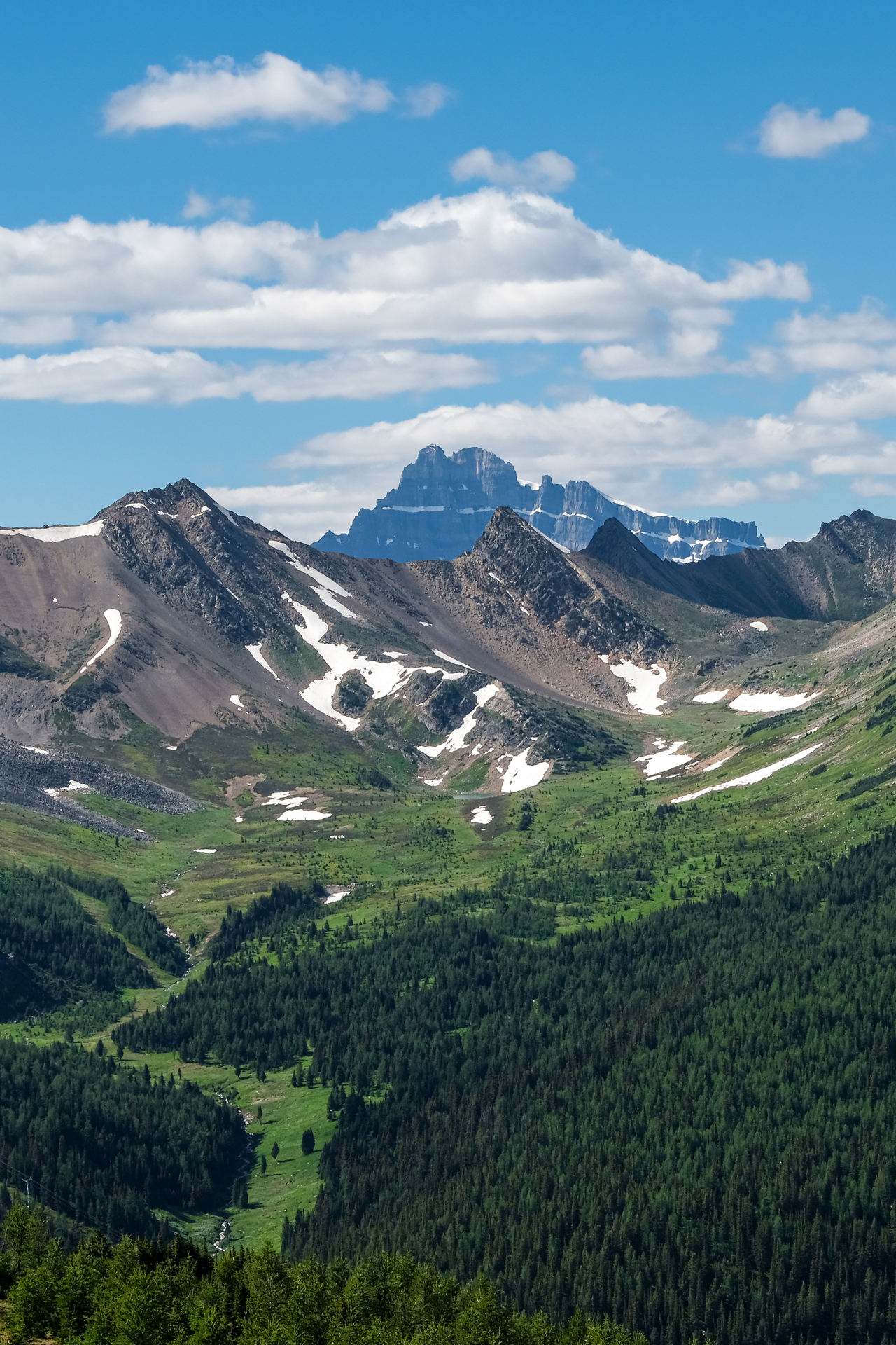There's a view we didn't get in winter! Mount Hector's incredible south face towers in the distance.